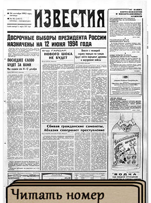 «Известия» / Учредитель: Журналистский коллектив «Известий» — 1993. — 24 сентября, пятница. — № 182 (24037). — 8 полос.